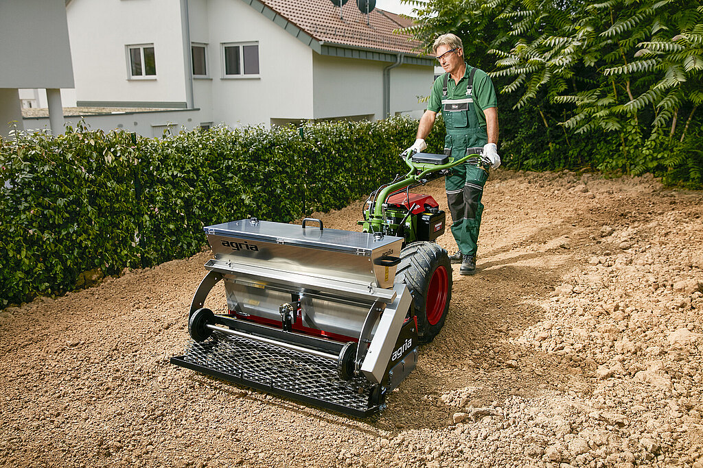 Kreiseleggen bieten zahlreiche Vorteile gegenüber herkömmlichen Eggen. Jeder Kreisel ist mit einer vertikalen Welle und einem robusten Zinkenpaar aus hochwertigem Stahl ausgerüstet, die den Boden optimal bearbeiten. Die Zinken arbeiten die zu bearbeitende Schicht effektiv auf und zerkleinern sie fein, während die darunter liegende Bodenschicht unversehrt und unverdichtet bleibt. Dies fördert eine gesunde Bodenstruktur und ermöglicht ein sehr gutes Eindringen von Wasser auch in tiefere Schichten und reduziert Staunässe - besonders wichtig bei tonhaltigen oder verdichteten Böden. Die feinkrümelige Struktur des erstellten Saatbettes fördert zudem die Wasserkapillarität, die für die Keimung und das frühe Wurzelwachstum essentiell. Die agria-Anbau-Kreiseleggen zeichnen sich durch robuste Stahlkonstruktion, präzise gefertigte rotierende Scheiben und wartungsfreundliche Technik aus und können mit praktischem Zubehör wie der Aufsattelsämaschine kombiniert werden, das zusätzliche Funktionalität bietet.