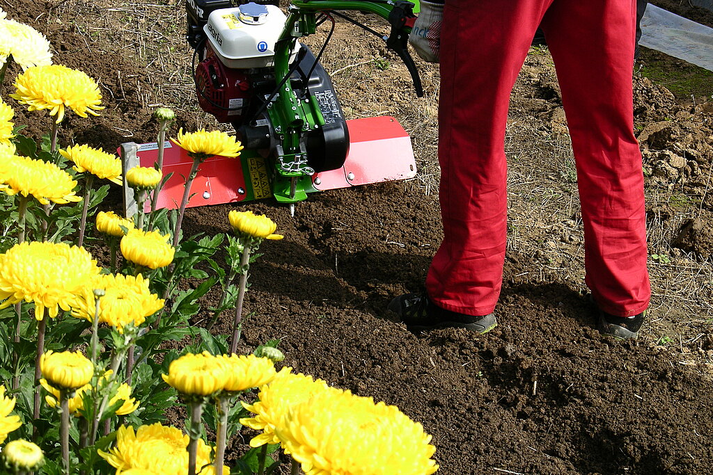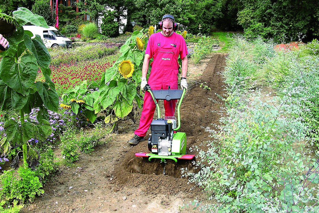 Ja, und mit einer Motorhacke wird im gleichen Schritt der Boden aufgelockert.
