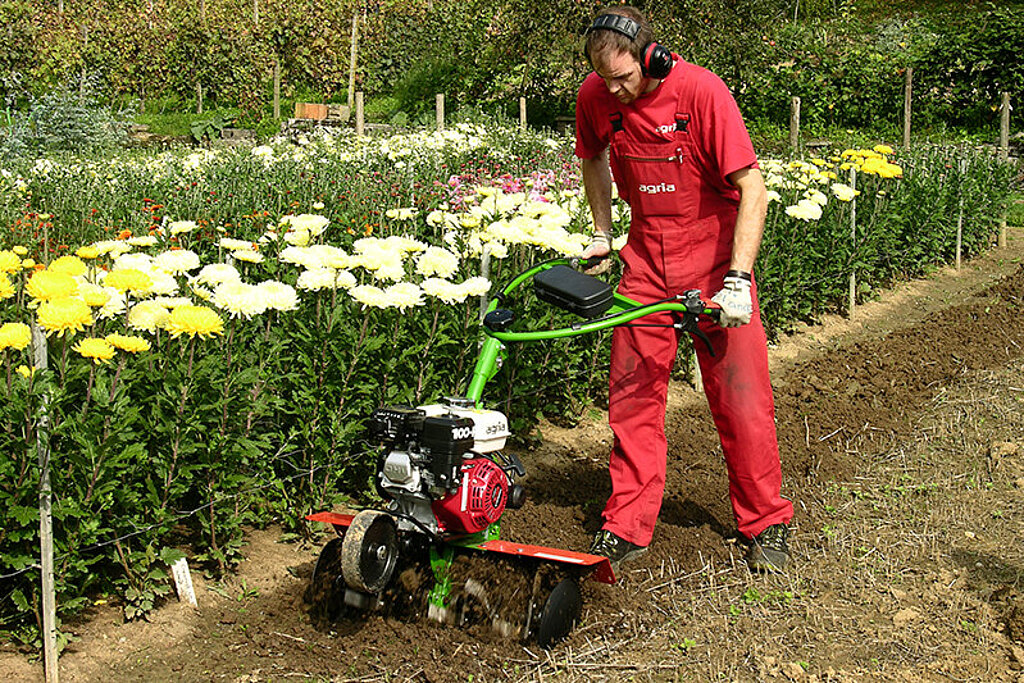 Das Hacken gehört zu den grundlegenden Arbeitsschritten im Garten- und Gemüsebau, da es bereits kultivierte Böden wiederholt auflockert und Wasser sowie Nährstoffe optimal in die Krume eindringen lässt. Motorbetriebene Hacken von agria ermöglichen zudem eine effektive mechanische Unkrautbekämpfung, ohne auf chemische Mittel zurückgreifen zu müssen. Charakteristisch für Hackgeräte ist der Antrieb durch das Hackwerk selbst, im Gegensatz zu Fräseinrichtungen mit separater Achse. Durch das rotierende Hackwerkzeug wird die Bodenoberfläche gelockert, Unkraut herausgerissen und die Verdunstung verringert, was gleichzeitig die Mineralisierung anregt und die Nährstoffversorgung der Pflanzen fördert. Mit den agria Motorhacken 0100 und 0800 können Flächen bis zu 1.000 m² effizient bearbeitet werden.