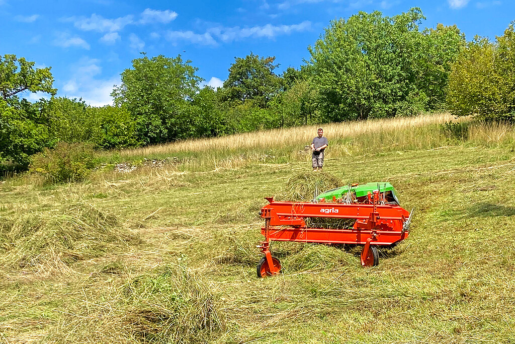 Das Abräumen erfüllt dabei mehrere wichtige Funktionen: Es sammelt das Mähgut gezielt, schont dabei den Boden und die Grasnarbe, reduziert Futterverschmutzung und Bröckelverluste, und bereitet das Material optimal für die nachfolgende Verarbeitung vor. In Steilhang-Regionen ist professionelles Abräumen sogar eine Sicherheitsfrage, da die Handarbeit große Risiken mit sich bringt.