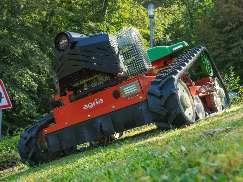In der Grünflächenpflege zeigt die agria 9500-80 ihre volle Stärke. Das integrierte Sichelmulchwerk ermöglicht das Mulchen sowohl in Vorwärts- als auch in Rückwärtsfahrt - ohne zeitraubende Wendemanöver, ohne unnötige Bodenverdichtung und ohne Risiko für den Bediener an steilen Hängen. Die Maschine arbeitet präzise, kraftvoll und besonders bodenschonend, da das leichte Raupenfahrwerk die Grasnarbe schützt und auch auf sensiblen Flächen für saubere Arbeitsergebnisse sorgt. Ob kommunale Grünflächen, Böschungen, Randstreifen oder extensiv genutzte Wiesen: Die agria 9500-80 kombiniert hohe Flächenleistung mit sicherem Handling und liefert selbst unter schwierigen Bedingungen ein überzeugend gleichmäßiges Mähbild.