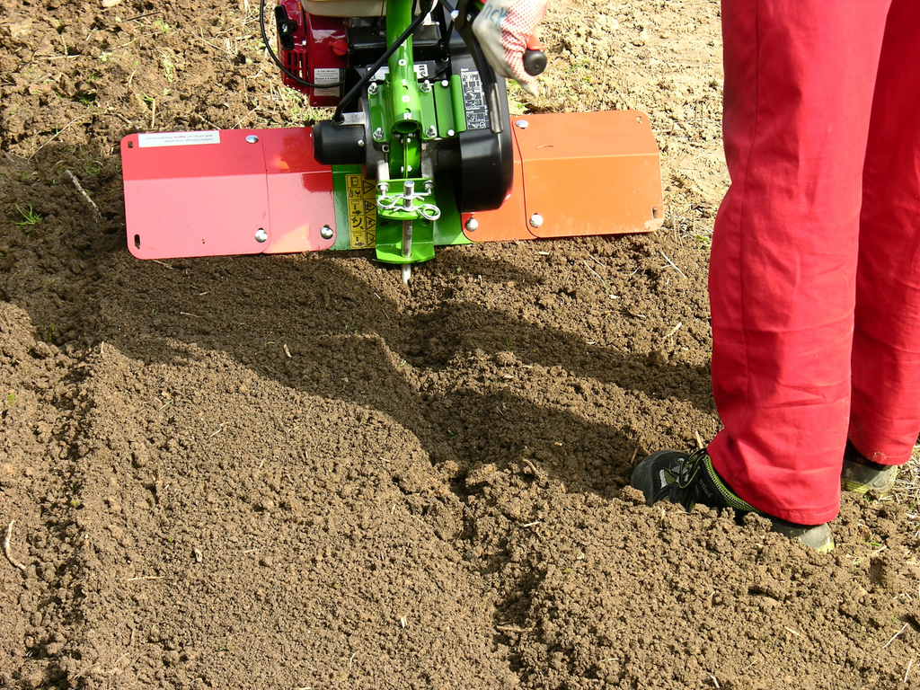 Ja, und mit einer Motorhacke wird im gleichen Schritt der Boden aufgelockert.