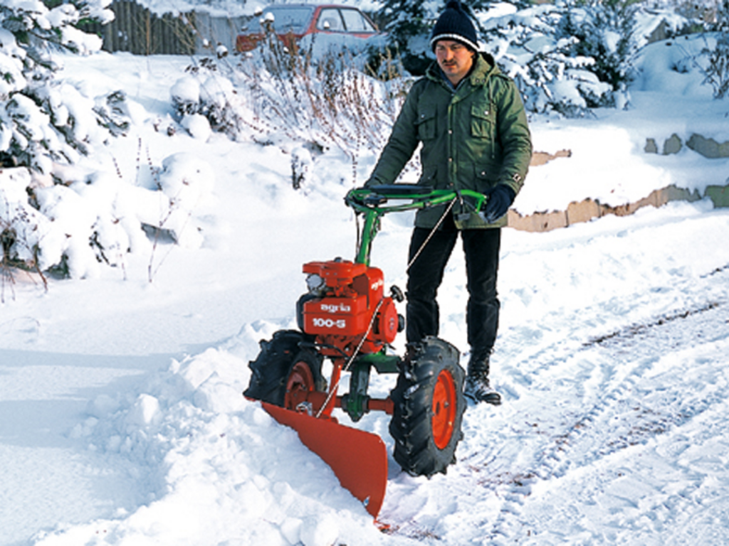 Ein Räumschild kommt zum Einsatz, um Wege und Flächen von Schneelagen zu befreien, die mit einer Kehrwalze nicht mehr zu bewältigen sind. Eine wesentliche Arbeitserleichterung beim Schneeräumen bringt die Verwendung von Frontgewichten, die für bessere Traktion und Stabilität beim Schneeschieben sorgen. Die Radgewichte erhöhen zusätzlich das Gewicht auf den Antriebsrädern und verhindern ein Durchrutschen auch bei schweren Schneelagen.