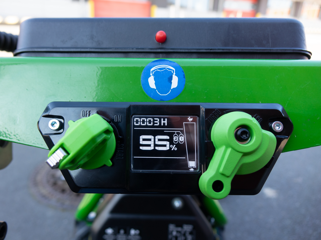 Die Maschine ist für den Betrieb mit EGO-Wechselakkus ausgelegt. Die Entscheidung, ein etabliertes, interoperables Akku-System zu verwenden, bietet professionellen Anwendern, die bereits EGO-Geräte im Einsatz haben, einen erheblichen Mehrwert: Die Akkus können flexibel zwischen verschiedenen Werkzeugen getauscht werden, was die Initialkosten für die gesamte Geräteflotte senkt. Das Wechselakku-System stellt zudem sicher, dass durch den schnellen Tausch leerer Akkus gegen geladene ein praktisch unterbrechungsfreier Dauereinsatz gewährleistet ist.