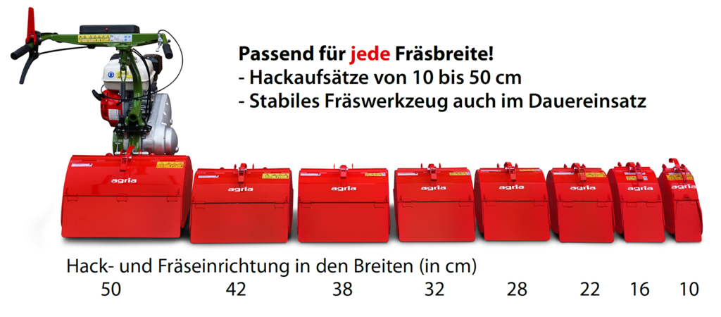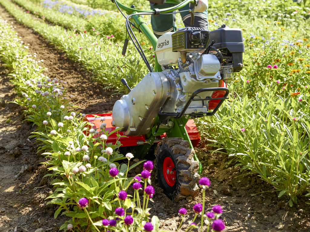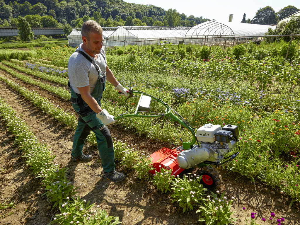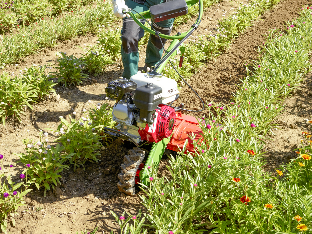Die Einradhacke agria 3100 ist ein Muss in der ökologischen Pflege von Reihenkulturen und ein starker Helfer im Garten. Mit geringstem Bodendruck kann diese Maschine auch bei ungünstigen Witterungsbedingungen zur mechanischen Unkrautbekämpfung genutzt werden. Der Einradantrieb der agria 3100 gewährleistet einen exakt "spurtreuen Vortrieb". Diese Eigenschaft ist entscheidend, da sie dem Bediener erlaubt, die Maschine millimetergenau durch die Reihe zu führen, ohne die links und rechts stehenden Kulturpflanzen zu beschädigen.
