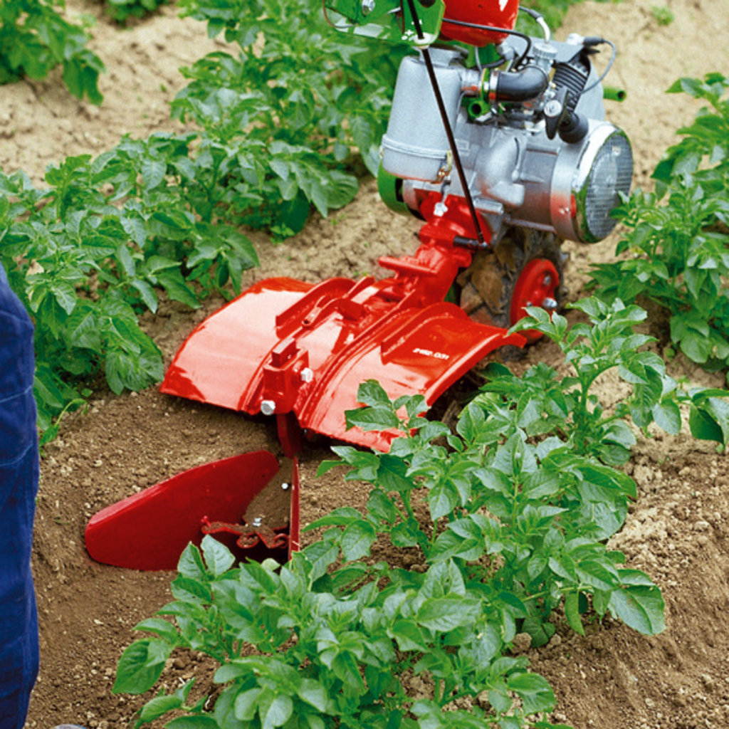 Mit der Fräse lässt sich bei leichten bis mittelschweren Böden in einem Arbeitsgang ein fertiges Saat- oder Pflanzbeet herrichten. Je langsamer die Fräse gefahren wird und je schneller die Fräswelle sich dreht, desto feiner ist die Bodenkrümelung. Mit der Fräse kann außerdem organisches Material (z. B. Gründüngung) eingearbeitet werden. Wir möchten, dass Sie mit unseren Geräten ideal arbeiten können, deshalb sind unsere Grund- und Anbaugeräte mit vielen nützlichen Optionen erweiterbar, wie z. B. Blattabweisern und Frontgewichten. Dazu gehört der Häufler -oder auch Häufelkörper genannt- der zur Erstellung von Pflanzdämmen für Kulturen wie Kartoffeln oder Spargel unerlässlich ist.