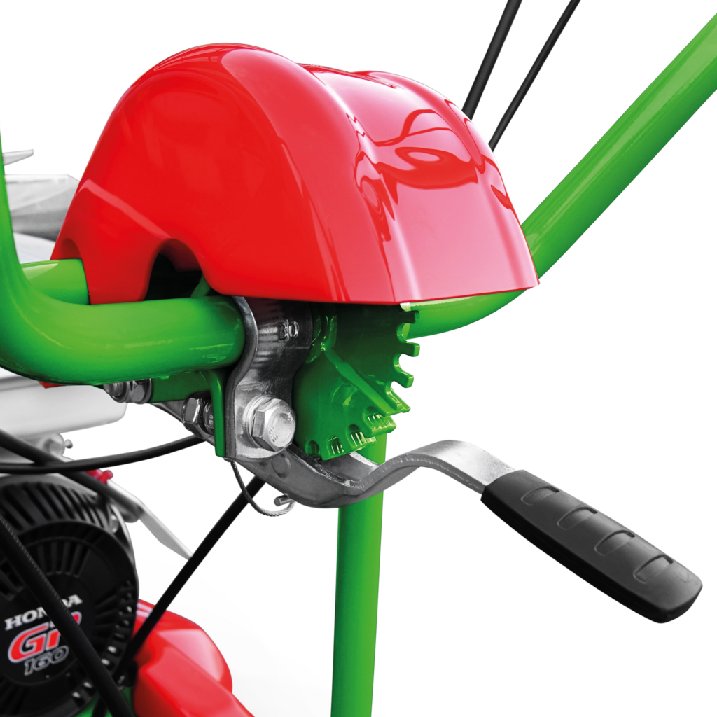 Der modulare Aufbau mit wechselbaren Bürsten, ein stufenlos einstellbarer Anpressdruck und Bürstendrehzahl sorgen für exakte Anpassung an jede Reinigungssituation und kann binnen weniger Minuten werkzeuglos gewechselt werden. Ein ergonomisch geformter Lenkholm, stufenlose Druckregulierung der Bürste und mechanischer Freilauf der Antriebsräder erleichtern Manövrierbarkeit, auch auf engem Raum oder bei Kurvenfahrt.