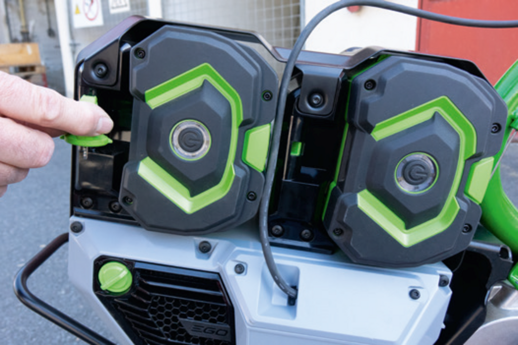 - Standardisiertes System mit EGO-Wechselakkus für eine lange Laufzeit der Maschine