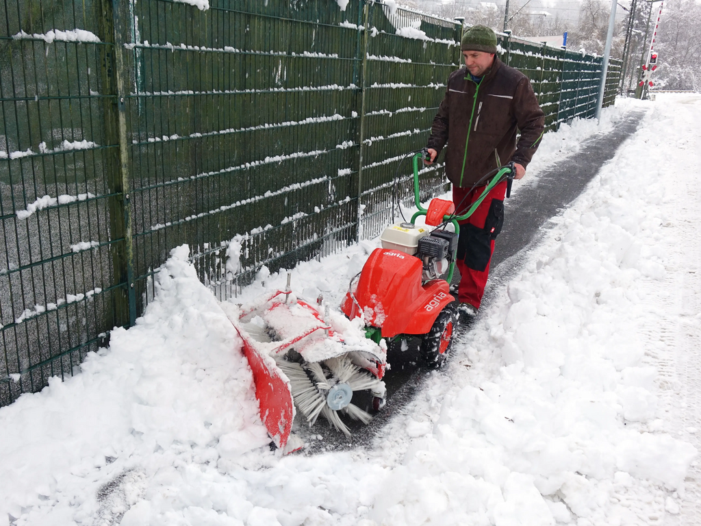 Bis zu einer Schneehöhe von ca. 15 cm ist die Kehrmaschine eine sehr gute Wahl um Flächen von Schnee zu befreien.