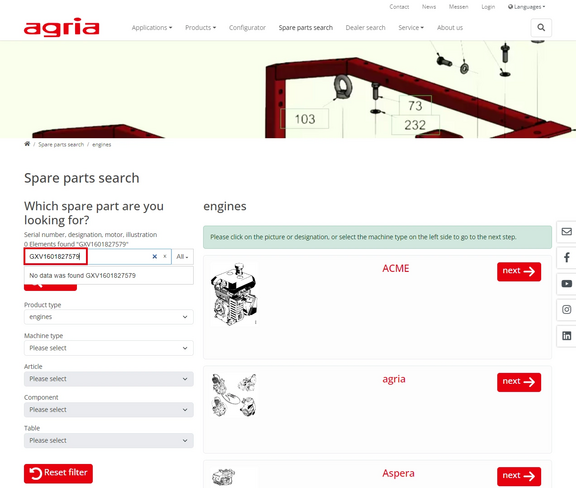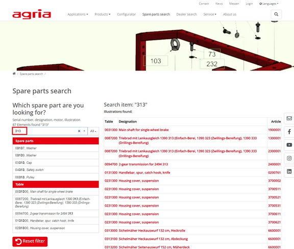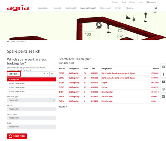 Welcome to the spare parts search help page on agria.de.
