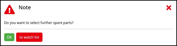 As soon as you add an item to the watch list, a message window appears. You can close this by clicking on the "X" in the above right-hand corner or by clicking on the "OK" button and continue searching for spare parts or click on the "Add to watchlist" button to jump directly to the watchlist.
