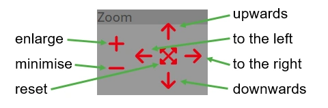 If you are using a tablet/smartphone with touch function or a device without a keyboard, you can navigate in the drawing using the "Zoom" toolbar
